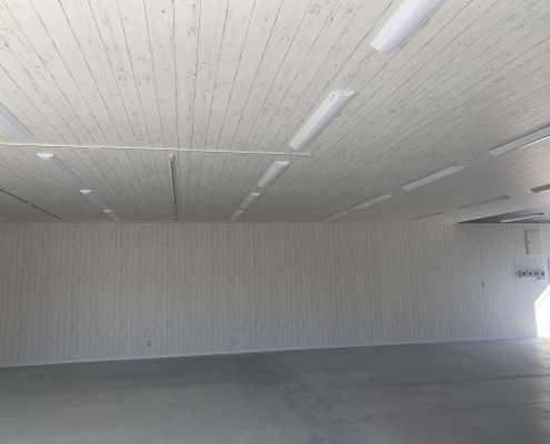 軽量鉄骨増による55坪の無柱解放空間、車両の撮影ブースとしても使用するため内装デザインにも拘りました。